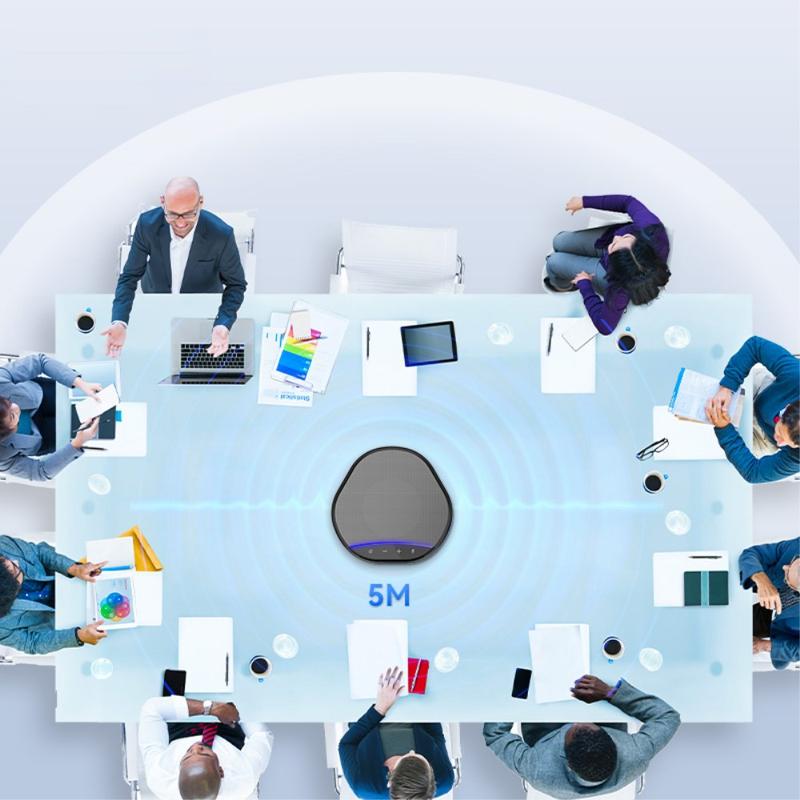 Features a dual-microphone array with 360° audio pickup, ideal for small to medium-sized conference rooms up to 20 square meters