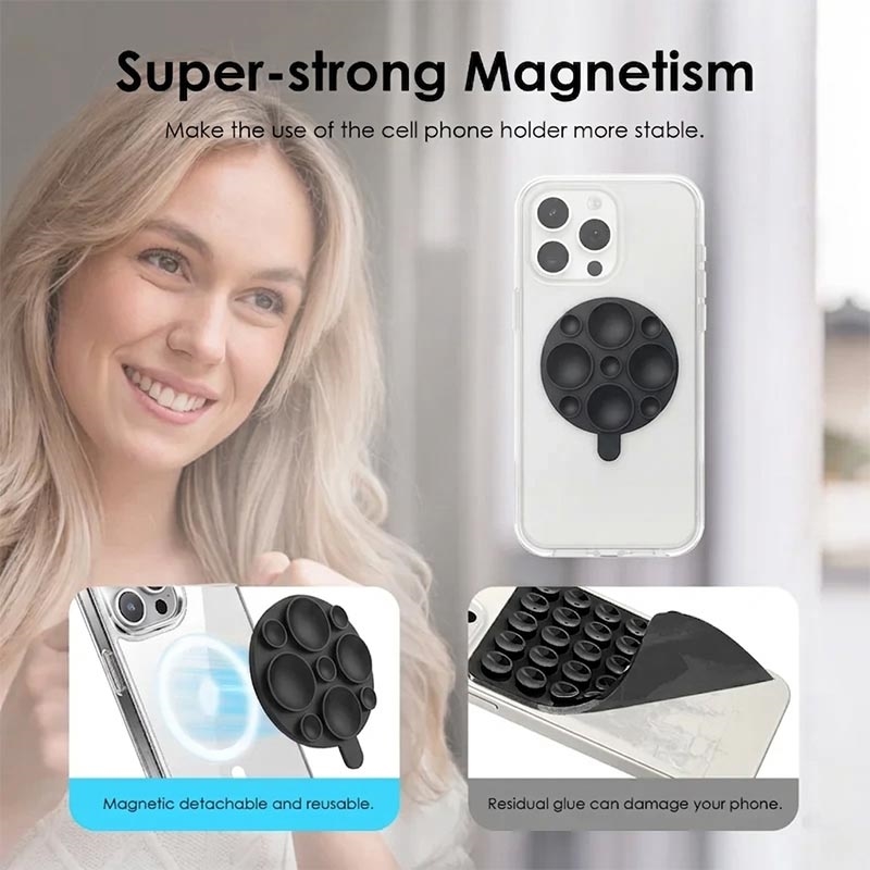 Made from soft silicone, it offers a comfortable touch, good grip, and reliable durability for daily use. The powerful magnetic design helps hold MagSafe-compatible phones in place, while the suction cup base creates a stable hands-free setup for different situations around the home or on the go. Lightweight and easy to carry, it is a practical accessory for users who want quick phone support without bulky mounts or complicated installation.