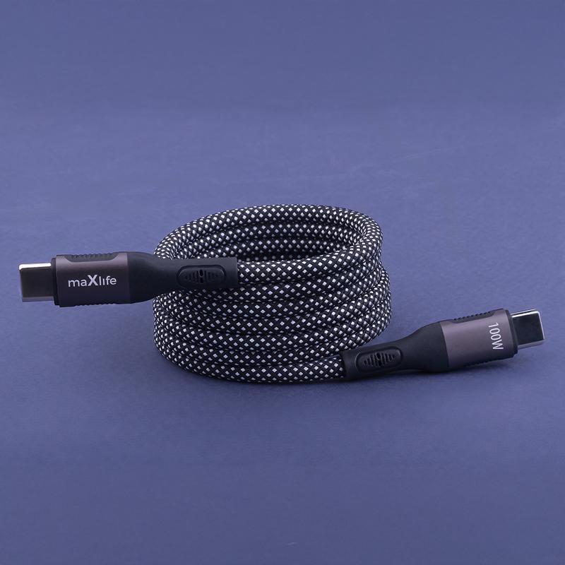 Maxlife MXUC-11 magnetic USB-C to USB-C Cable - 1m, 100W Fast Charging, Nylon Braided, Reinforced Connectors