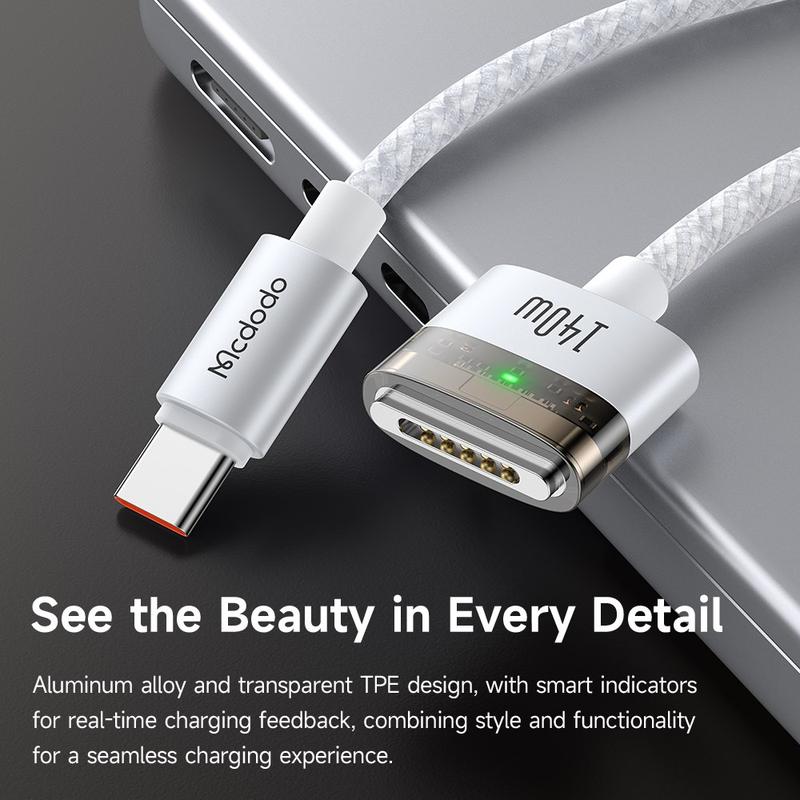 Mcdodo CA-207 140W USB-C to MagSafe 3 Charging Cable - 2m - Nylon Braided with Indicator Light
