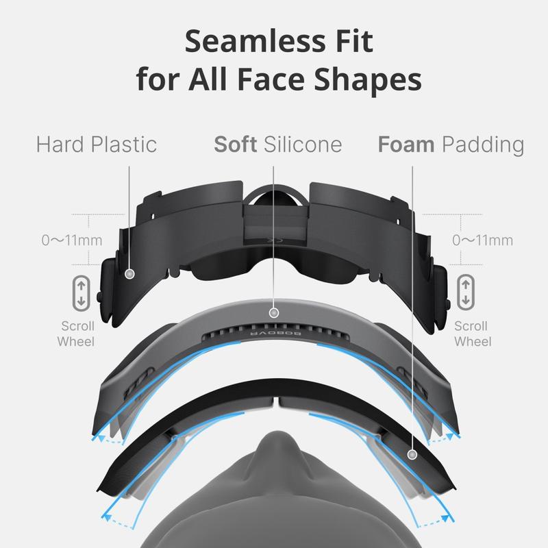 Equipped with side dials, the BOBOVR F3 lets you fine-tune the screen distance to match your individual preference. Whether you’re gaming, watching VR movies, or working in virtual environments, you’ll always have an optimized view.