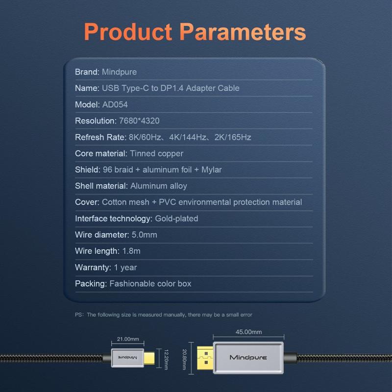 Enhance your visual experience with the MindPure USB Type-C to DisplayPort DP 1.4 Cable today!
