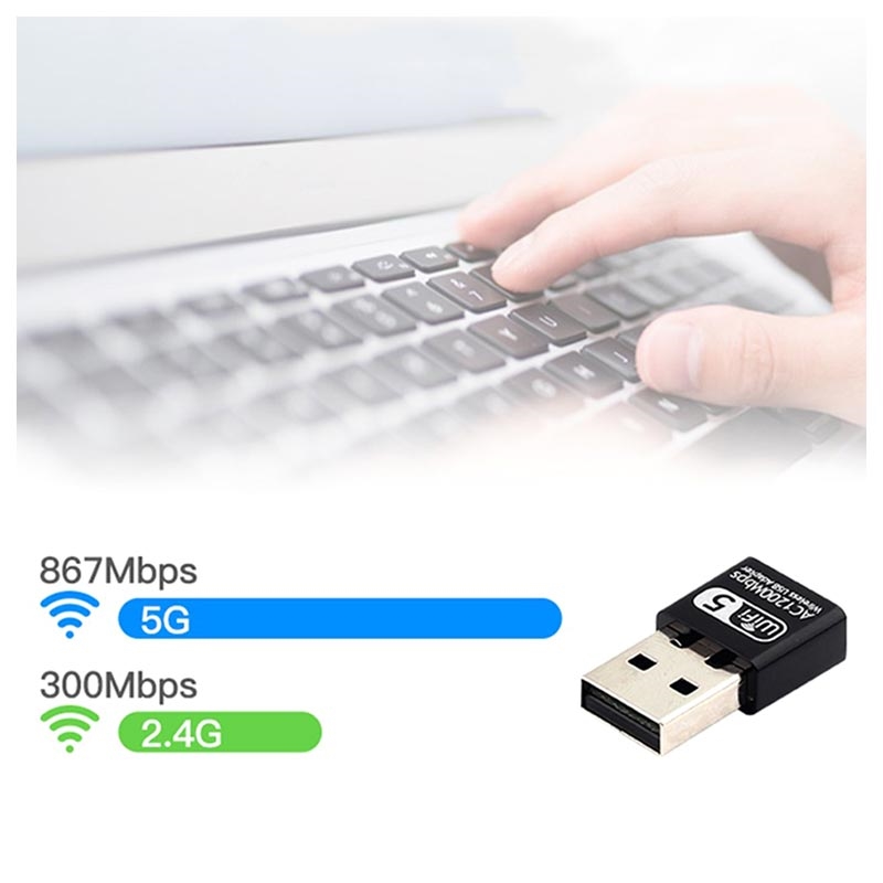 Mini Dual Band Wireless USB Adapter for PC, Laptop - 2.4GHz (300Mb/s), 5GHz (867Mb/s), USB 2.0