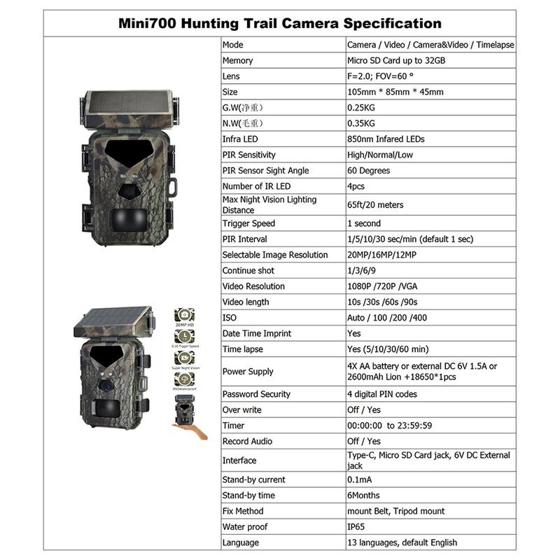 Mini700 20MP 1080p Infrared Trail Camera / Night-Vision Wildlife & Hunting Scout