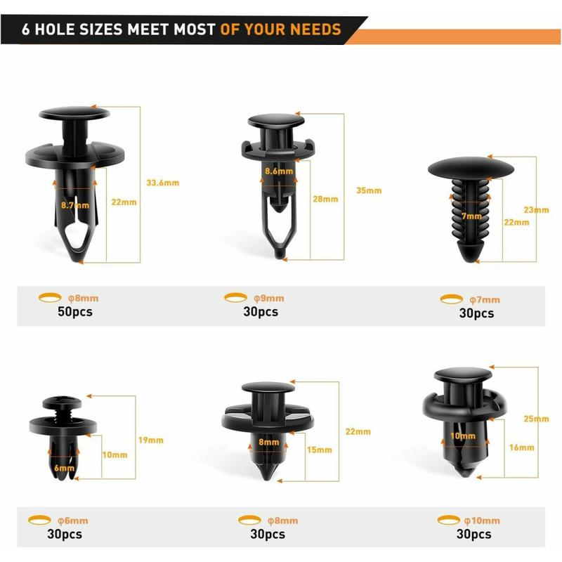 Whether you’re repairing a bumper, replacing door panels, or performing regular vehicle upkeep, this set of universal automotive fasteners streamlines your work by eliminating the need to scavenge for assorted clips. It’s perfect for professional mechanics, DIY enthusiasts, and automotive restorers.