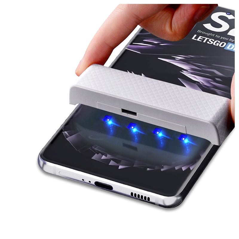 - Step 5: Carefully apply the tempered glass screen protector and wait for the UV glue to fully spread without pressing down on the screen protector additionally