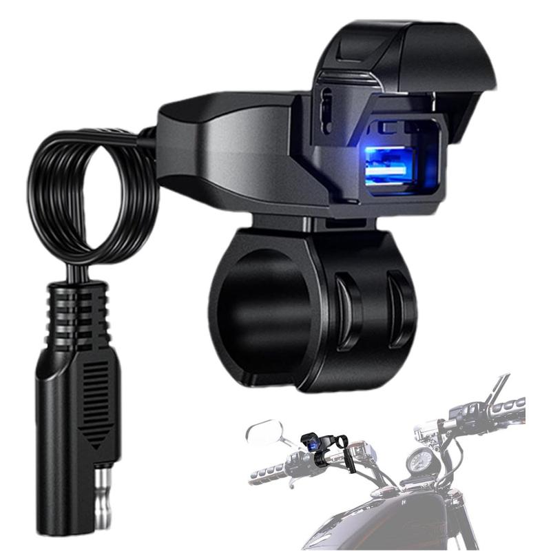 Motorcycle Handlebar USB Charger 18W - IP66 Waterproof SAE-to-USB Fast-Charge Adapter (5 V / 3 A, 9 V / 2 A, 12 V / 1.5 A)