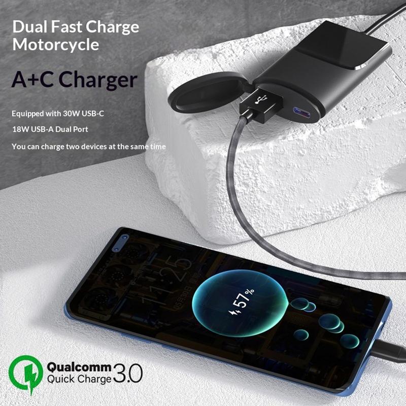 With a 30W USB-C PD port and an 18W USB-A port, this charger supports fast charging for a wide range of devices and allows you to charge two devices at the same time. Its IP67 waterproof construction and built-in safety protection make it a dependable choice for everyday riding and outdoor use in changing weather conditions.