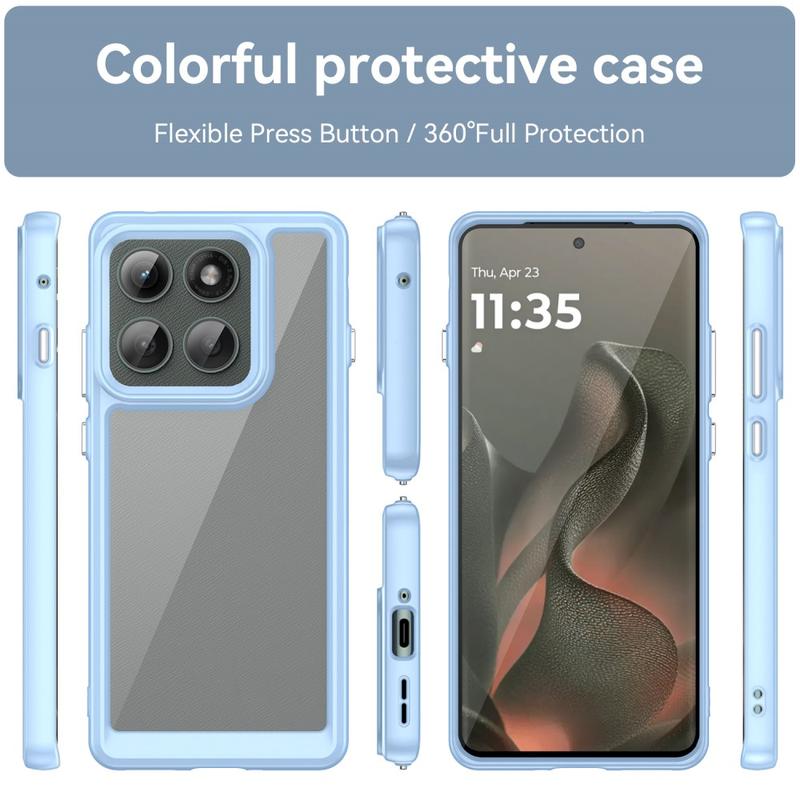 This quality Anti-Shock hybrid case for Motorola Edge (2025) safeguards the back and the sides from daily bumps, dents, and scratches. The case is perfectly shaped to follow contours of your Motorola Edge (2025), while the transparent back lets its original beauty shine through.