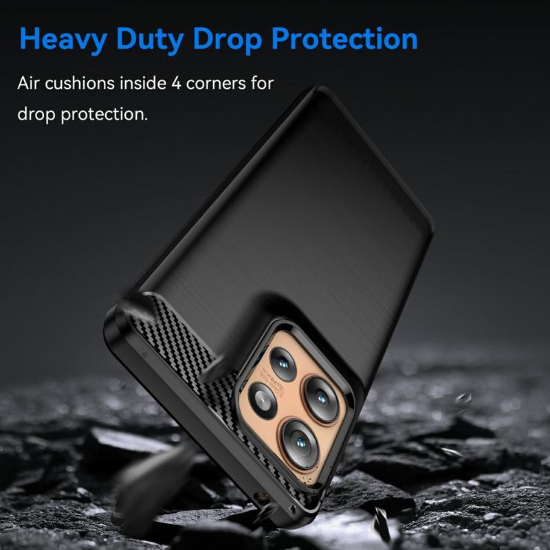 The Brushed TPU case adequately protects your Motorola Edge 50 while giving it a great style, thanks to its carbon-fiber pattern on the back. The case also ensures overheating when using your Motorola Edge 50, with its heat-dissipation design.