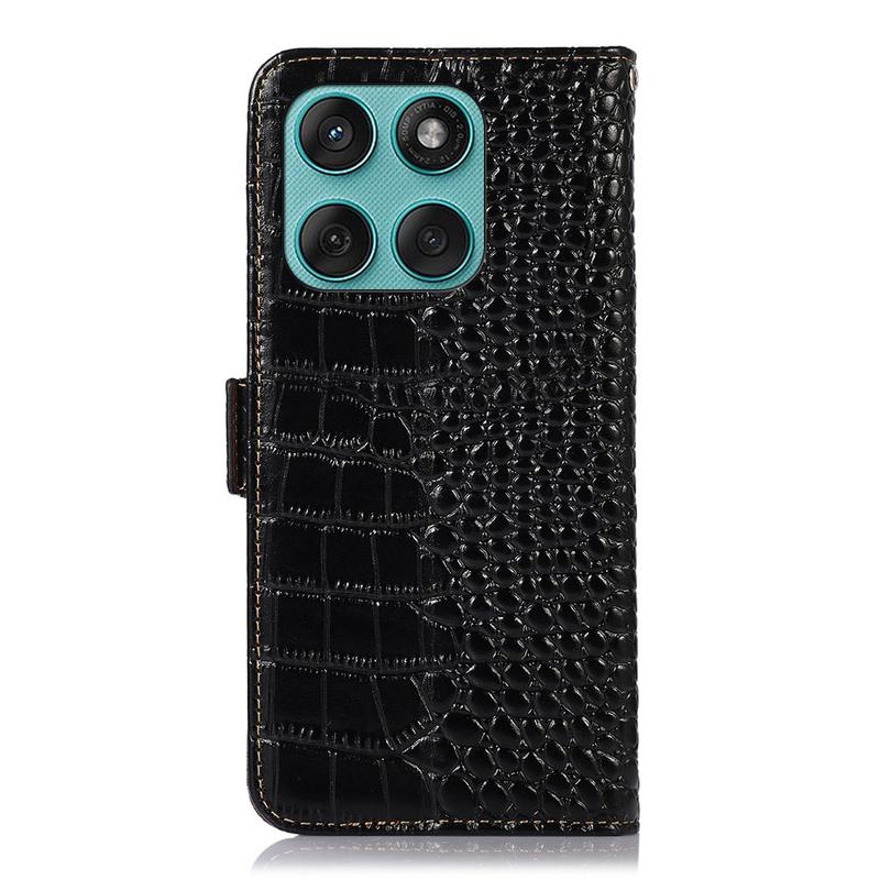 A lightweight and soft wallet case with a unique crocodile texture, the perfect choice to protect your Motorola Edge 60 Fusion and keep it undamaged. It's made of high-quality genuine leather and inner TPU material, designed with three card slots, an ID slot, and a pocket for cash, ideal for carrying your essentials next to your Motorola Edge 60 Fusion. Also, RFID technology effectively blocks signals and keep's your data secured.