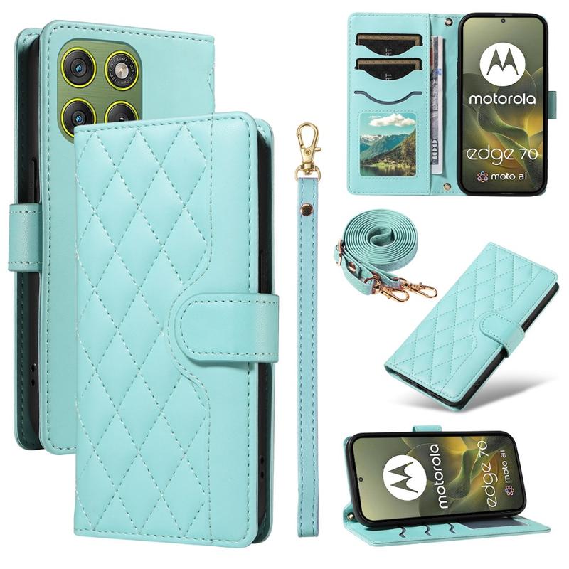 • Luxury Quilted Wallet Case with Shoulder & Wrist Strap for Motorola Edge 70 - Rhombus Pattern Protective Cover