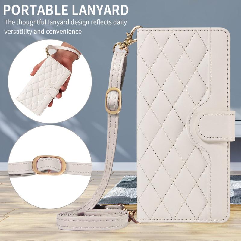 • Luxury Quilted Wallet Case with Shoulder & Wrist Strap for Motorola Edge 70 - Rhombus Pattern Protective Cover