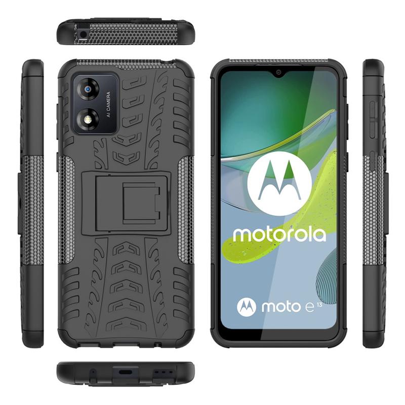 Upon boasting a unique design, this accessory provides exceptional defense for your Motorola Moto E13 Meanwhile, the built-in kickstand enables comfortable, hands-free video watching.