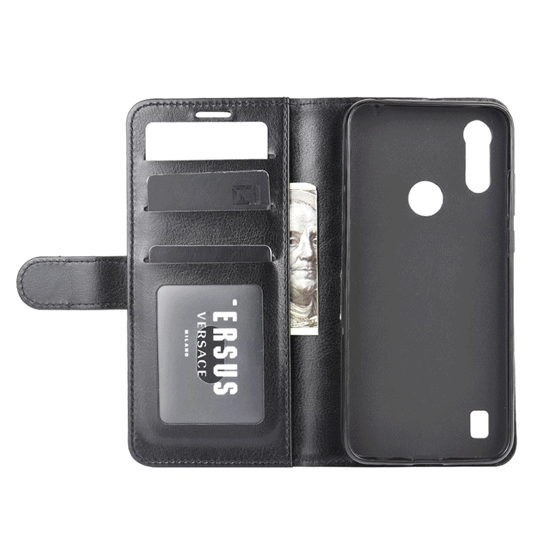 It's made of lightweight polyurethane and features inside card slots, a cash compartment, as well as an additional TPU case for your Motorola Moto E6s (2020). It offers absolute safety against damage and is equipped with a foldable front flap that lets you set your Motorola Moto E6s (2020) in a comfortable viewing position.