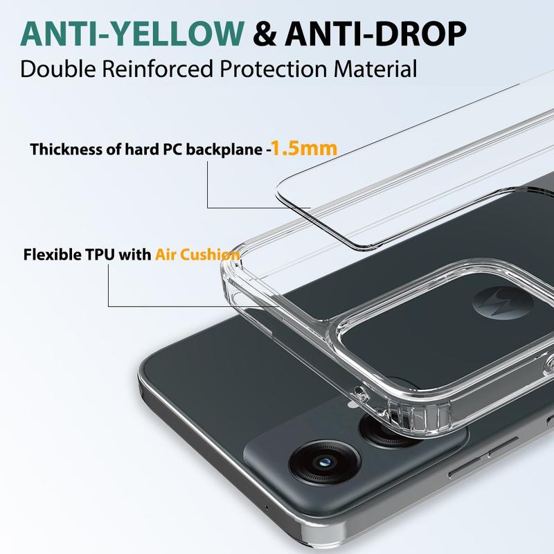 This accessory utilizes a combination of acrylic and TPU to keep your smartphone in pristine condition. Meanwhile, the reinforced, shock-absorbing corners prevent drop damage, while the transparent design showcases the gorgeous design of your Motorola Moto G (2024).