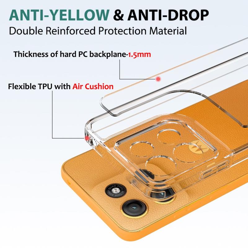 This accessory utilizes a combination of acrylic and TPU to keep your smartphone in pristine condition. Meanwhile, the reinforced, shock-absorbing corners prevent drop damage, while the transparent design showcases the gorgeous design of your Motorola Moto G17 Power, Moto G17, Moto G15.