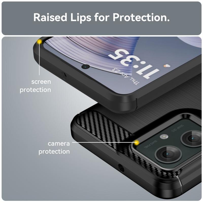 The Brushed TPU case adequately protects your Motorola Moto G55 while giving it a great style, thanks to its carbon-fiber pattern on the back. The case also ensures overheating when using your Motorola Moto G55, with its heat-dissipation design.