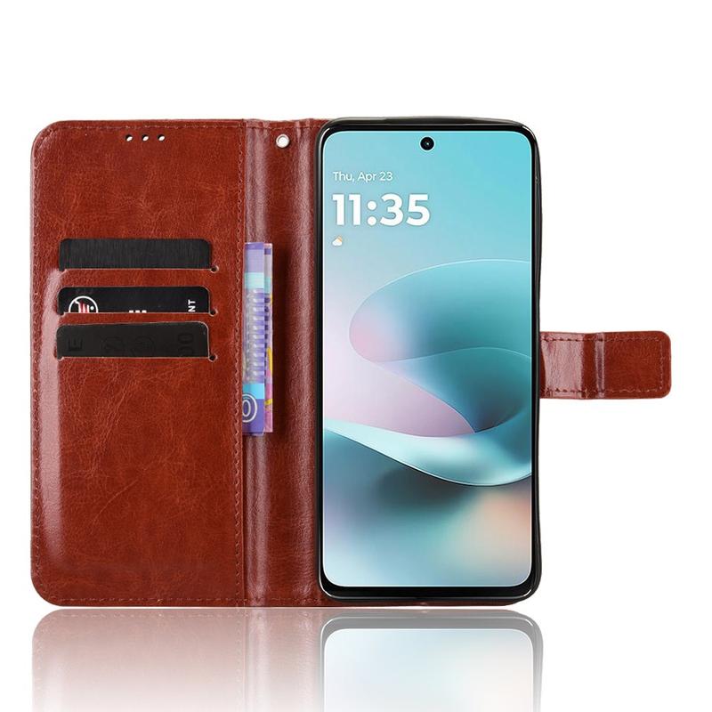 Give your new Motorola Moto G67 Power, Moto G57 Power, Moto G57 a refined, vintage look while replacing your everyday wallet. The Crazy Horse-textured polyurethane exterior pairs with a shock-absorbing TPU shell to guard against drops and scratches, while clever pockets keep cards and cash organised.