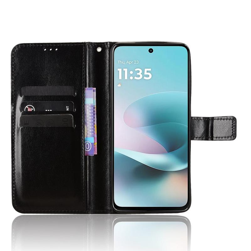 Give your new Motorola Moto G67 Power, Moto G57 Power, Moto G57 a refined, vintage look while replacing your everyday wallet. The Crazy Horse-textured polyurethane exterior pairs with a shock-absorbing TPU shell to guard against drops and scratches, while clever pockets keep cards and cash organised.