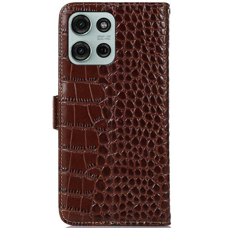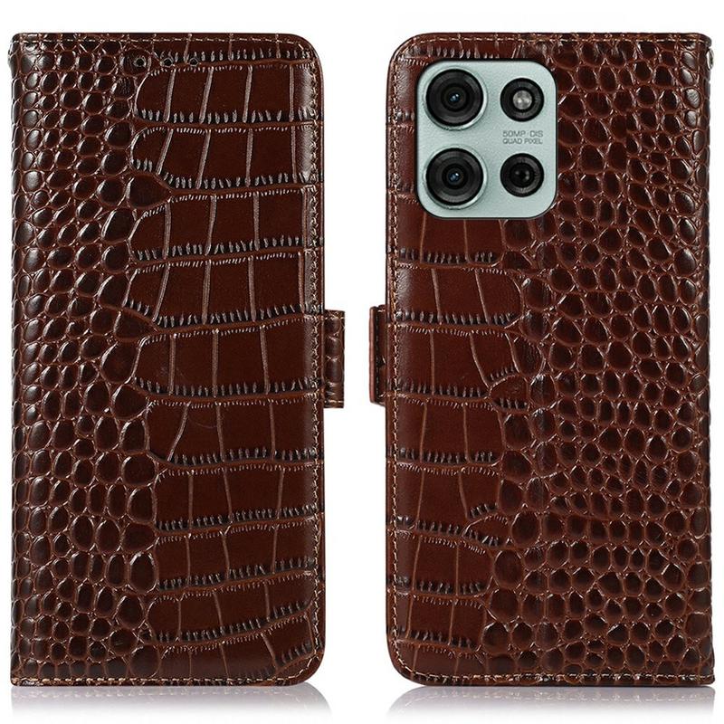 A lightweight and soft wallet case with a unique crocodile texture, the perfect choice to protect your Motorola Moto G75 and keep it undamaged. It's made of high-quality genuine leather and inner TPU material, designed with three card slots, an ID slot, and a pocket for cash, ideal for carrying your essentials next to your Motorola Moto G75. Also, RFID technology effectively blocks signals and keep's your data secured.