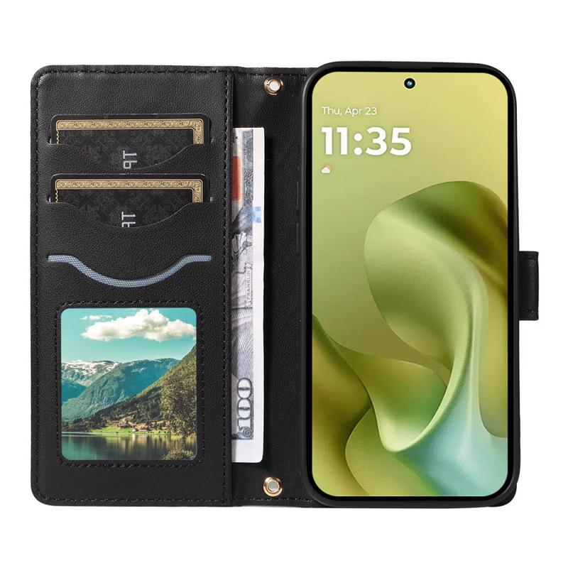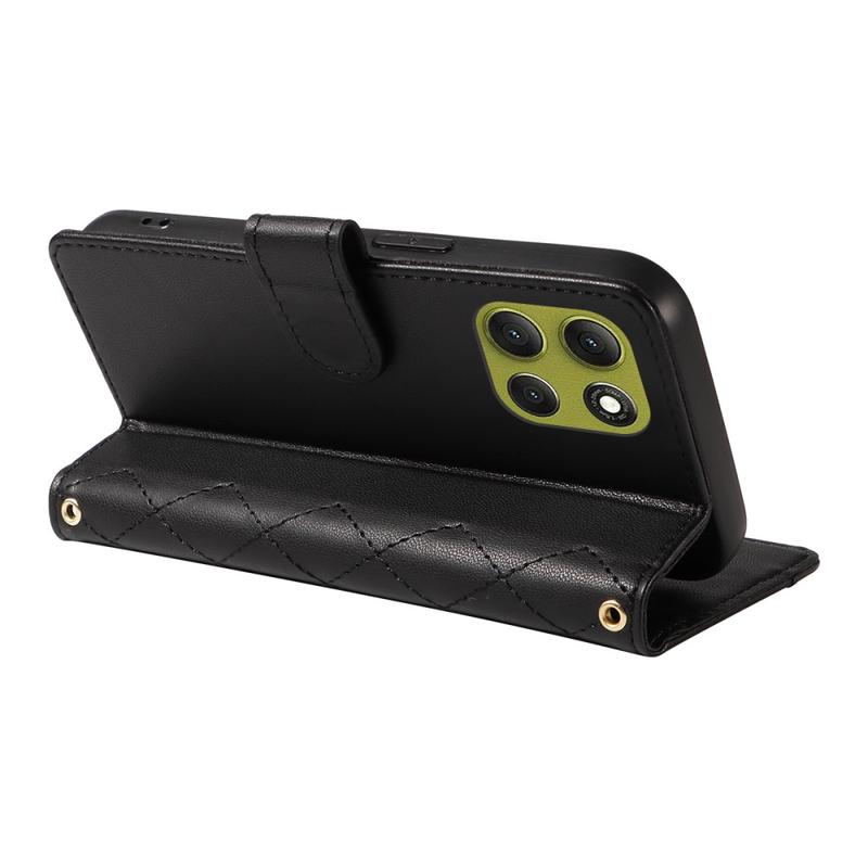 Protect your Motorola Moto G86 with this luxurious quilted wallet case. Constructed with TPU material coated with PU leather, this case is scratch-resistant and anti-fingerprint, keeping your phone looking stylish and sleek. The stitching line forms a rhombus grid pattern, adding a fashionable and beautiful touch to the case. The raised edge of the camera and screen offers effective protection against scratches, while the precise cutouts provide full access to all buttons, ports, and other features. The wallet design allows for easy storage of essential cards and cash, and the included suction cups can be used as a supporting stand for hands-free use. With added protection against scratches, impact, drops, and daily damage, this case also comes with a shoulder strap and wrist strap for added convenience.