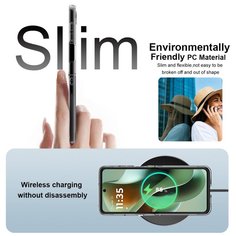 This polycarbonate shell shields your smartphone from wear, dents, and impacts without really affecting its appearance and feel. The slim form factor ensures maximum comfort and no extra weight, while the high-quality, transparent material keeps the original color of your Motorola Razr 60 Ultra.
