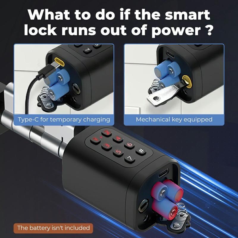 MS001-B-BLU runs on 3 AAA LR03 batteries, so no fixed power connection is required. The battery life can last up to 12 months under normal use, helping keep maintenance simple. If the batteries run out, the built-in Type-C emergency charging port lets you power the lock temporarily, so you can still unlock the door without the risk of being locked out.