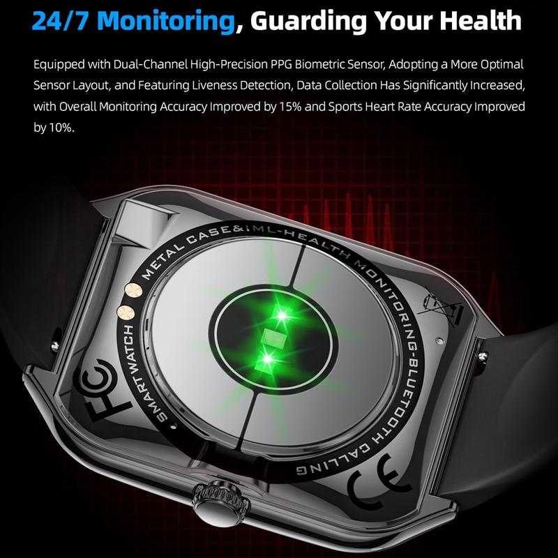- Complete health suite: heart rate (HX3918 sensor), blood pressure, SpO₂, sleep, steps and calories