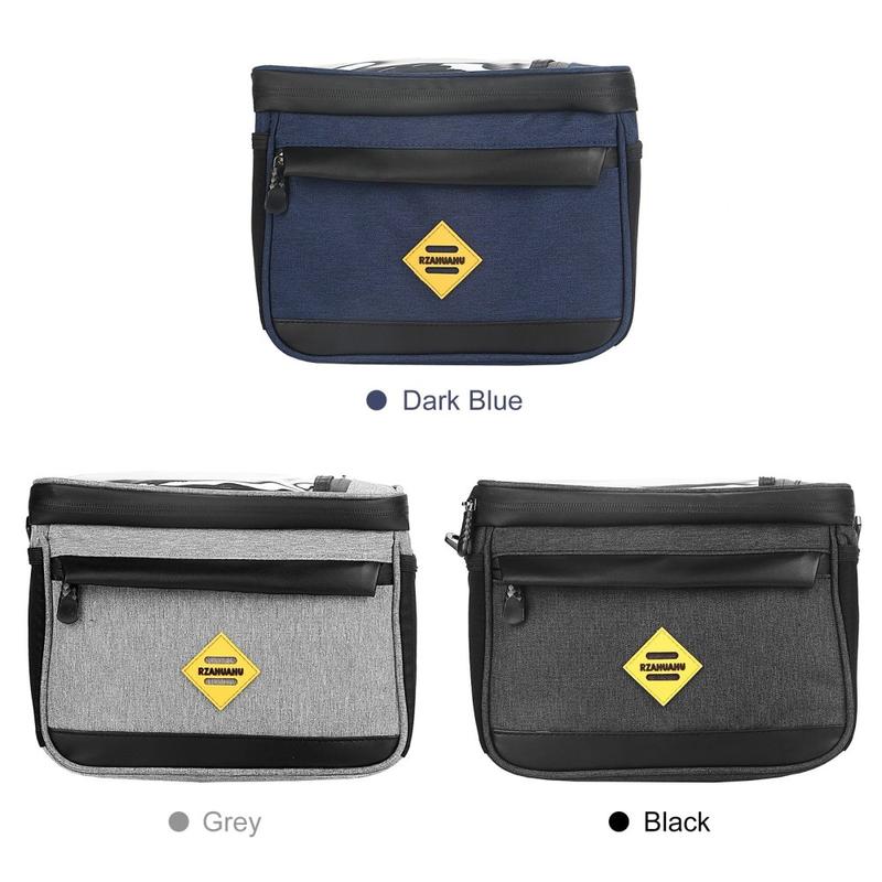This handlebar bag is constructed of water-resistant oxford cloth for long-term use. The zippered main compartment is spacious and insulated, which means it can hold a lot of items while also keeping your beverage cool. The transparent pouch on the top provides a convenient "display platform" for your map or cellphone. The mesh pockets on both sides can hold some small items within your reach in seconds. The zippered front pocket for safe storage of valuables. With an adhesive fastener strap, you can mount the bag on your bike handlebar easily. And the removable adjustable shoulder strap makes it convenient to carry when the bag is removed from the bike.