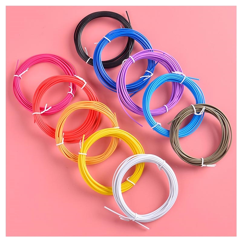 Refill the 3D printing pen for kids with these multicolor PCL filaments! Universal compatibility - 1.75mm printing filament diameter makes them suitable for most 3D pens. Each 3D pen filament refills color has a length of 5 meters. Put the used filaments into warm water, and after a while, you can use them as a plasticine.
