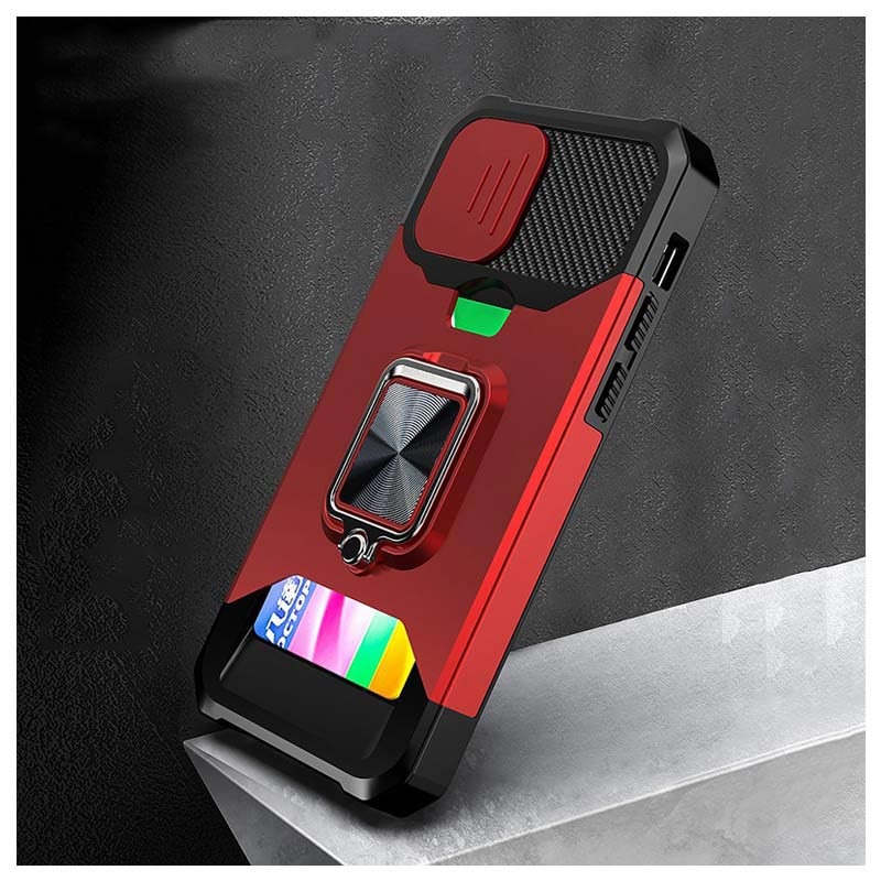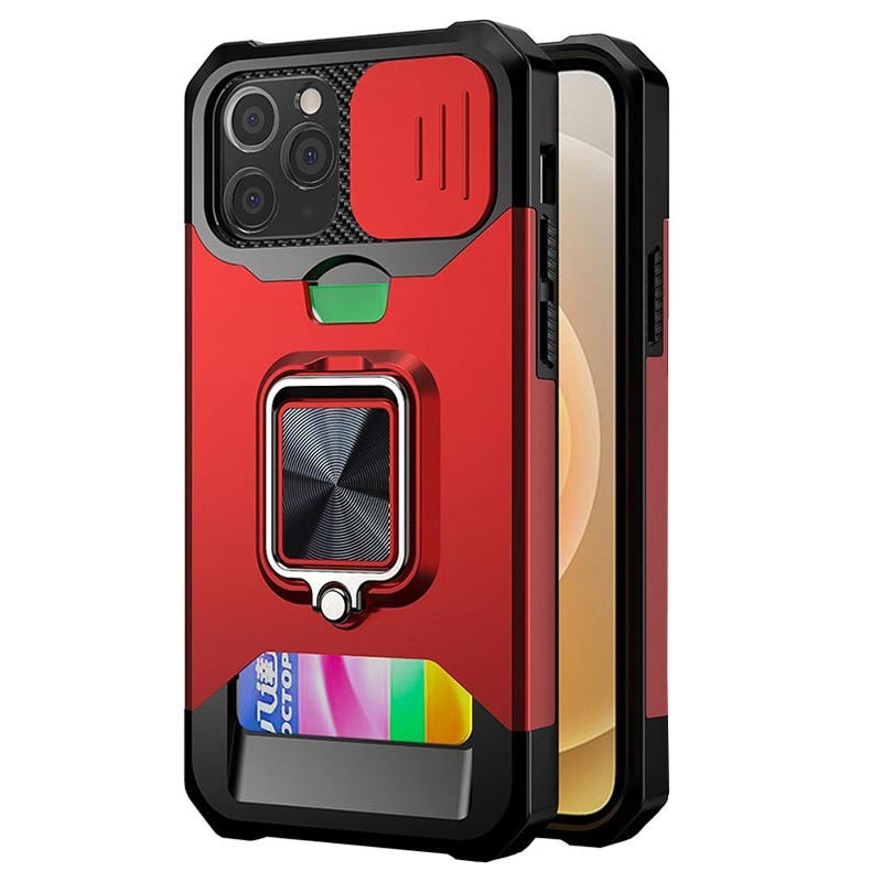 Multifunctional 4-in-1 Hybrid Case for iPhone 12, iPhone 12 Pro with Card Holder, Magnetic Ring, Kickstand, Camera Protection