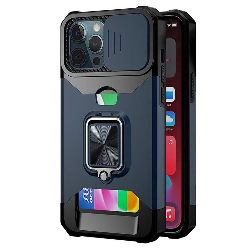 Multifunctional 4-in-1 Hybrid Case for iPhone 12 Pro Max with Card Holder, Magnetic Ring, Kickstand, Camera Protection