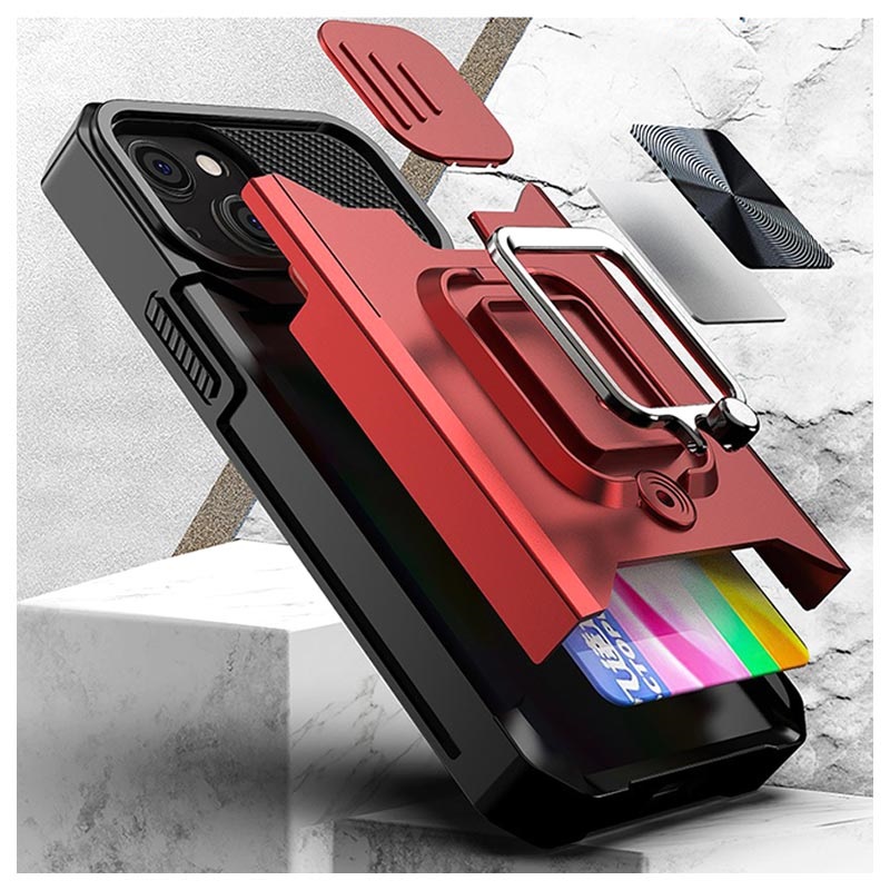 Beyond multifunctionality, this hybrid case provides reliable protection against daily damage, wear, scratches and bumps. Use back compartment to store credit card, ring kickstand for handsfree media viewing, and camera slider to improve security. This hybrid case for iPhone 13 Mini is compatible with magnetic holders.