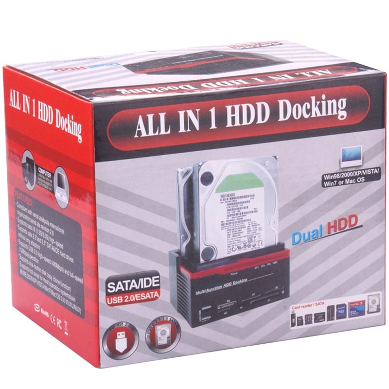 Multifunctional USB 2.0 to SATA/IDE Docking Station - HDD, SSD, M2, MS, XD, TF, SD, CF, 480MB/s
