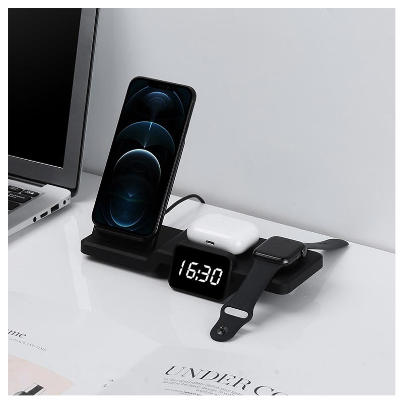 Multifunctional Wireless Charging Station with Clock C100 - QC3.0, 15W/2W/3W