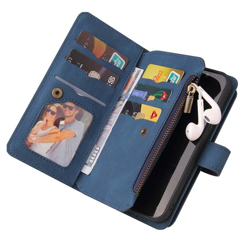 Keep your valuables right with your iPhone 14 Pro Max with this multipurpose wallet case. Multiple slots and one zipper pocket allow you to store cards, documents, and some cash, while the included strap prevents accidental drops. This stylish wallet case represents excellent protection for your iPhone 14 Pro Max from dust, scratches, and minor impacts.
