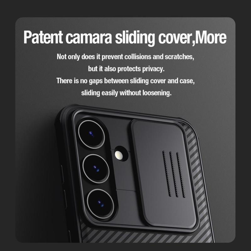 Your Samsung Galaxy S24+ will be as good as new, equipped with the top-quality Nillkin CamShield Pro Magnetic hybrid case. The combination of durable plastic and flexible TPU materials ensures extreme protection against everyday impacts. The case features a camera sliding lid that completely protects your Samsung Galaxy S24+ camera and preserves your privacy from unwanted spying. Meanwhile, the integrated magnets allow you to attach your MagSafe wireless charger, holder, or wallet to your Samsung Galaxy S24+ while still in the case.