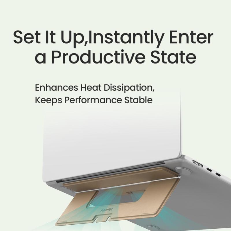 Upgrade your workspace, improve posture, and protect your laptop with the NILLKIN Dual-Wing Adhesive Laptop Stand – your trusty partner for effortless, on-the-go productivity.
