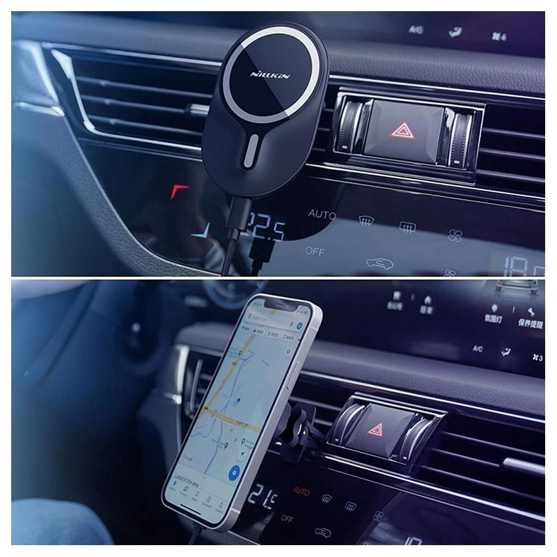 Nillkin MagRoad Magnetic Wireless Charger / Car Holder for iPhone 16, iPhone 16 Plus, iPhone 16 Pro, iPhone 16 Pro Max, iPhone 15, iPhone 15 Plus, iPhone 15 Pro, iPhone 15 Pro Max, iPhone 14, iPhone 14 Plus, iPhone 14 Pro, iPhone 14 Pro Max, iPhone 13, iPhone 13 Mini, iPhone 13 Pro, iPhone 13 Pro Max, iPhone 12, iPhone 12 Pro, iPhone 12 Pro Max, iPhone 12 Mini - 10W
