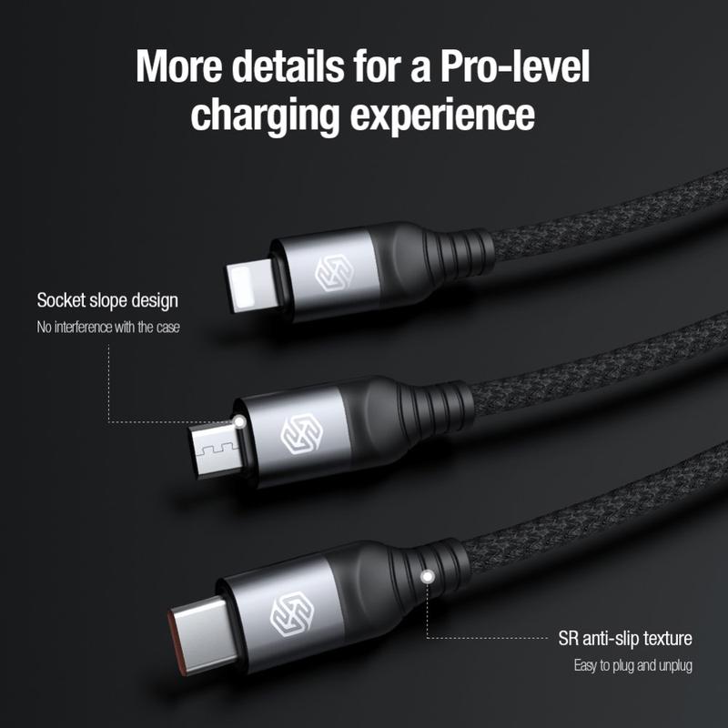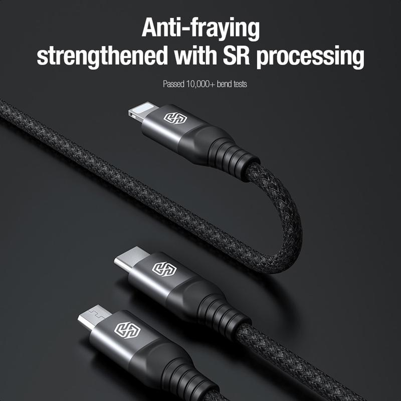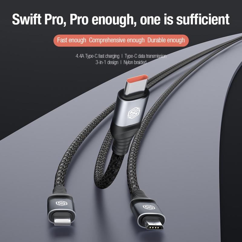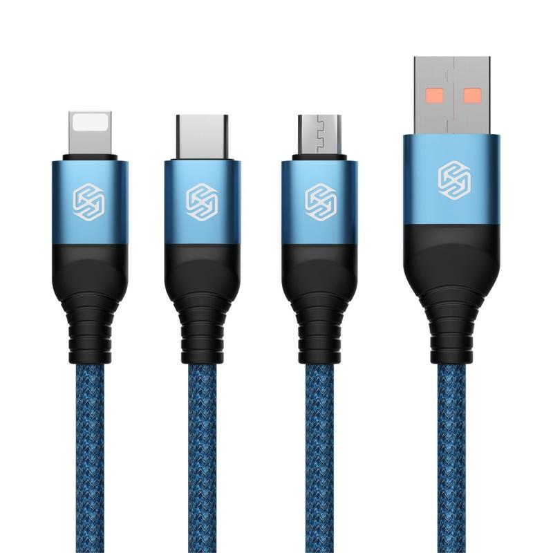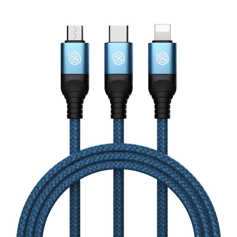 NILLKIN Swift Pro 3-in-1 Cable Nylon Braided USB to Type-C / iP / Micro Charging Cord - Blue