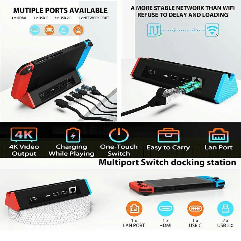 Nintendo Switch 2 Docking Station - 4K 120Hz HDMI 2.1 Extension Hub with USB 3.0, USB-C and Gigabit LAN Port