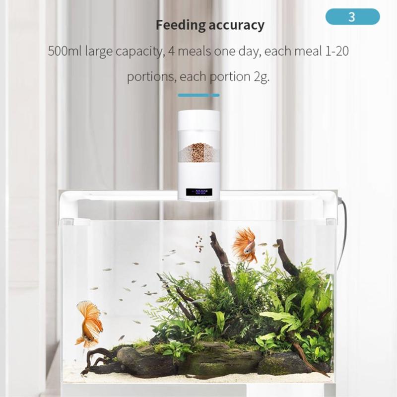 - Large Capacity: 500ml food container accommodates various types of dry fish food, reducing the frequency of refills.