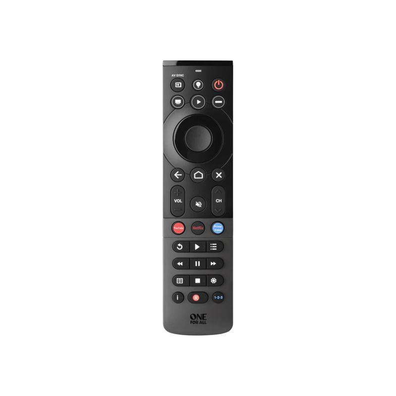 Transform your entertainment setup with the ONE FOR ALL URC 7945 Smart Streamer Universal Remote Control. Designed to seamlessly control up to five devices, this remote simplifies your home entertainment system by eliminating the need for multiple remotes. With pre-programmed compatibility, customizable features, and backlit keys, it offers convenience and functionality for the modern EU household.