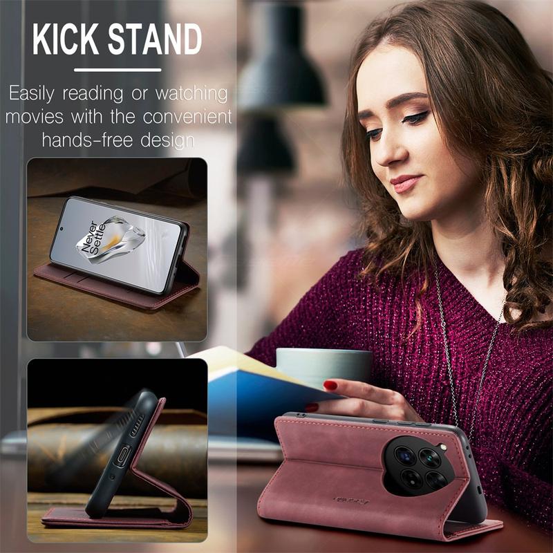 A combination of TPU and polyurethane provides all-around protection for OnePlus 12, shielding it from dust, dirt, impacts, scratches, and daily wear. Magnetic attraction keeps the case closed, and clever design enables hands-free usage while watching media content.