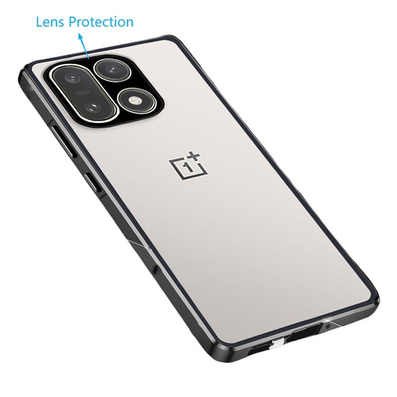 - OnePlus 15 case with a metal frame and tempered glass for the back and front