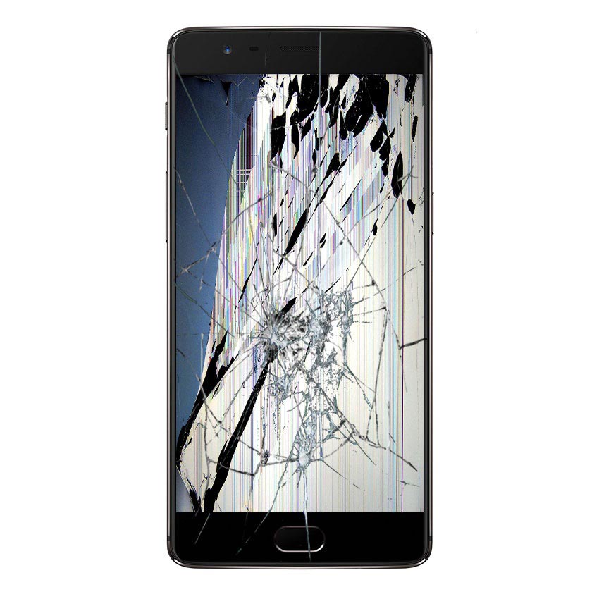 • Your OnePlus 3T looks like in the picture? If the Touchscreen doesn't react or it is badly damaged and the LCD screen displays unusual artefacts or doesn't work at all, than your device needs a LCD and Touch Screen repair.