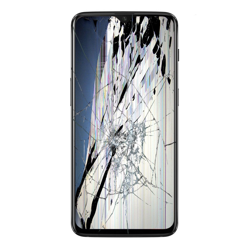 OnePlus 6T looks like in the picture? If the Touchscreen doesn't react or it is badly damaged and the LCD screen displays unusual artefacts or doesn't work at all, than your device needs a LCD and Touch Screen repair.