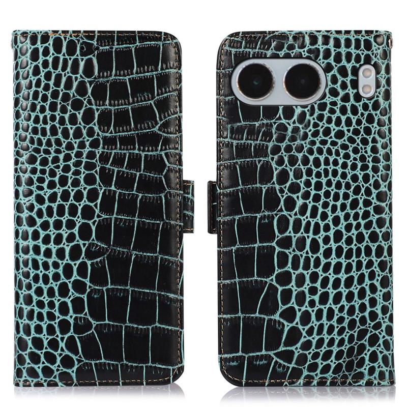 A lightweight and soft wallet case with a unique crocodile texture, the perfect choice to protect your OnePlus Nord 4 and keep it undamaged. It's made of high-quality genuine leather and inner TPU material, designed with three card slots, an ID slot, and a pocket for cash, ideal for carrying your essentials next to your OnePlus Nord 4. Also, RFID technology effectively blocks signals and keep's your data secured.