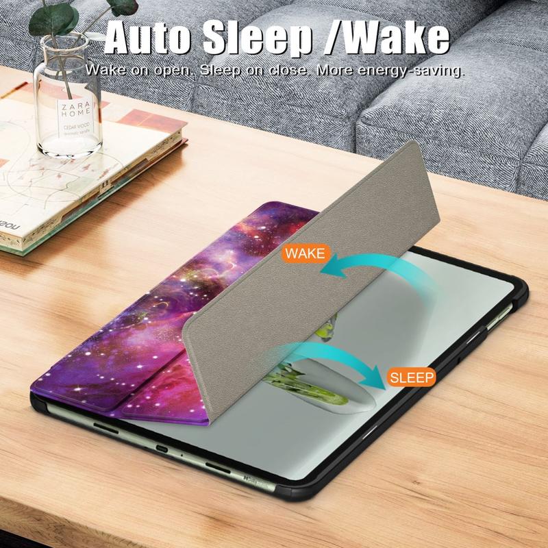 Whether you're watching a video or drawing with a stylus on your OnePlus Pad Go, Oppo Pad Air2, this folio case holds it at an ideal angle, ensuring a more comfortable and productive experience. Meanwhile, the smart wake up / sleep feature automatically turns on the display when you open the front flap.